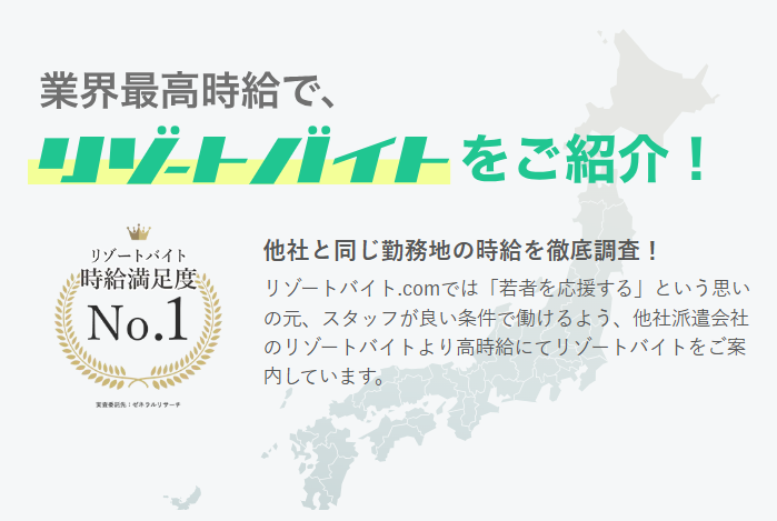 他の大手派遣会社(例:リゾバ.com、アルファリゾート)に比べても、平均時給が高めに設定されている